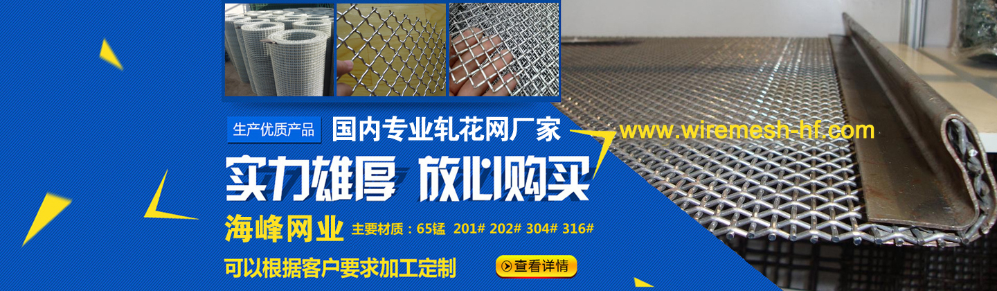 - 安平縣海峰金屬網(wǎng)業(yè)有限公司 安平縣海峰金屬網(wǎng)業(yè)有限公司位于中國(guó)著名的“絲網(wǎng)之鄉(xiāng)”——河北省安平縣,是具有拉絲織網(wǎng)、焊接、剪裁、噴塑、浸塑成品等一整套生產(chǎn)工藝的專業(yè)化廠家。本公司經(jīng)過(guò)多年來(lái)的順勢(shì)發(fā)展,現(xiàn)已擁有廣闊的生產(chǎn)廠房和優(yōu)良的辦公環(huán)境,占地8500平方米,在廠職工100余人。擁有高深的技術(shù)人員,高端的生產(chǎn)設(shè)備,全自動(dòng)的機(jī)械化生產(chǎn)流水線,站在了軋花網(wǎng)、石籠網(wǎng)同行業(yè)的頂端。 查看更多>>